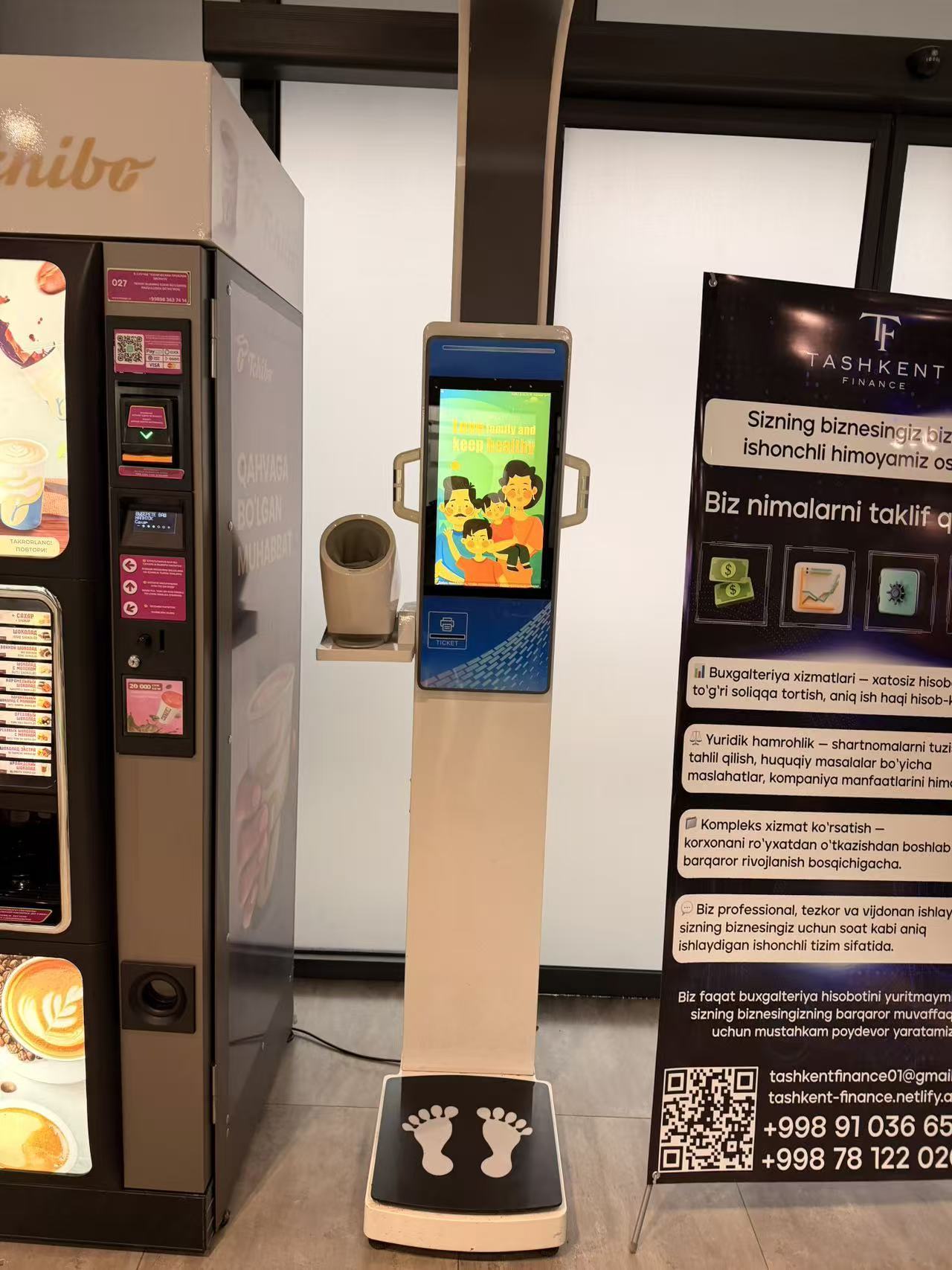 1.Η κύρια λειτουργία είναι ύψος, βάρος, ΔΜΣ, λίπος σώματος, πίεση αίματος & σφυγμός, θερμικός εκτυπωτής.
