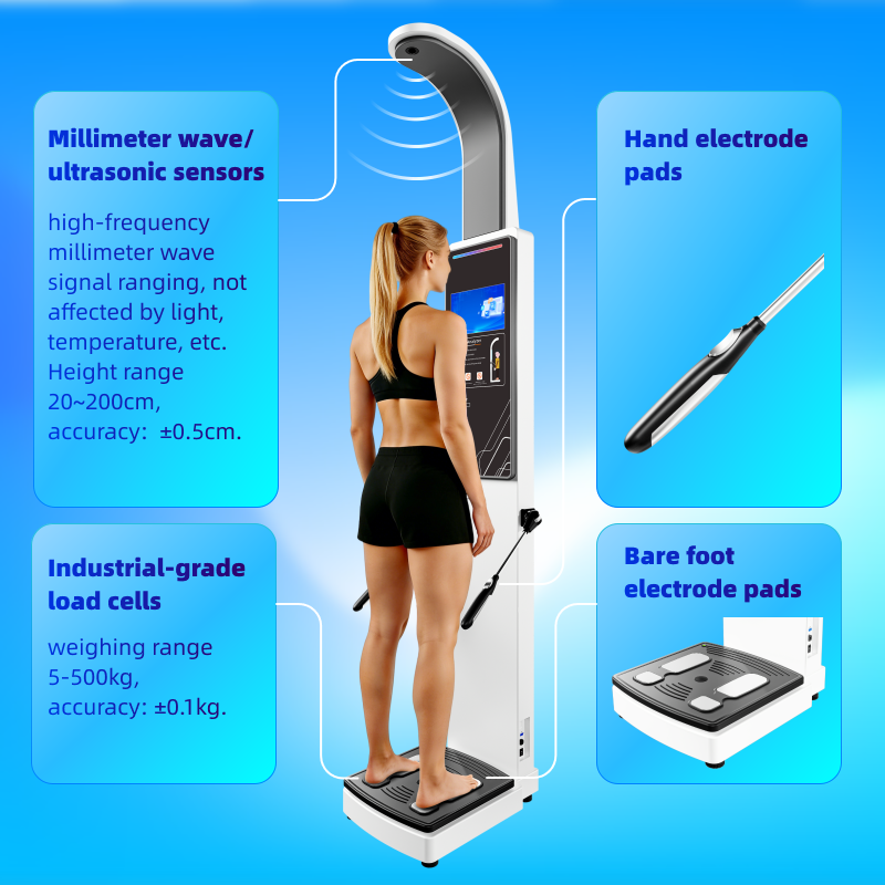 1.Η κύρια λειτουργία είναι ύψος, βάρος, ΔΜΣ, ανάλυση σύστασης σώματος, θερμικός εκτυπωτής, αναγνώριση προσώπου (προαιρετικό).